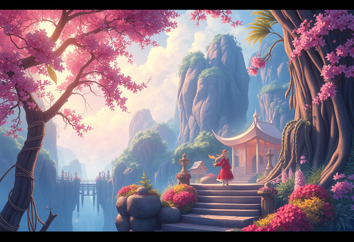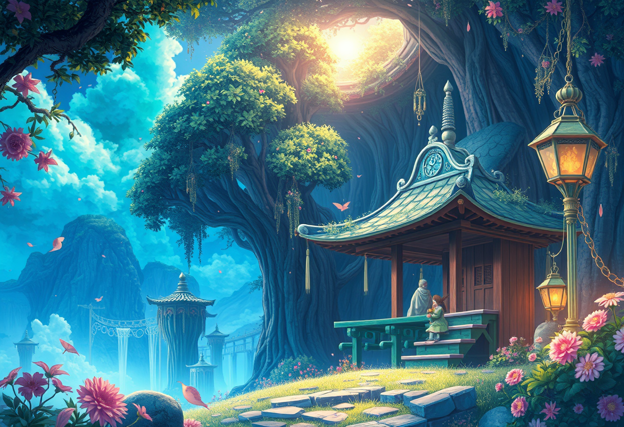 "a magical fantasy scene, anime art style, Studio Ghibli inspired, beautiful anime illustration, detailed anime scenery, soft diffused lighting, dreamy ethereal glow, vibrant saturated colors, high color contrast, highly detailed, rich textures, intricate details"
