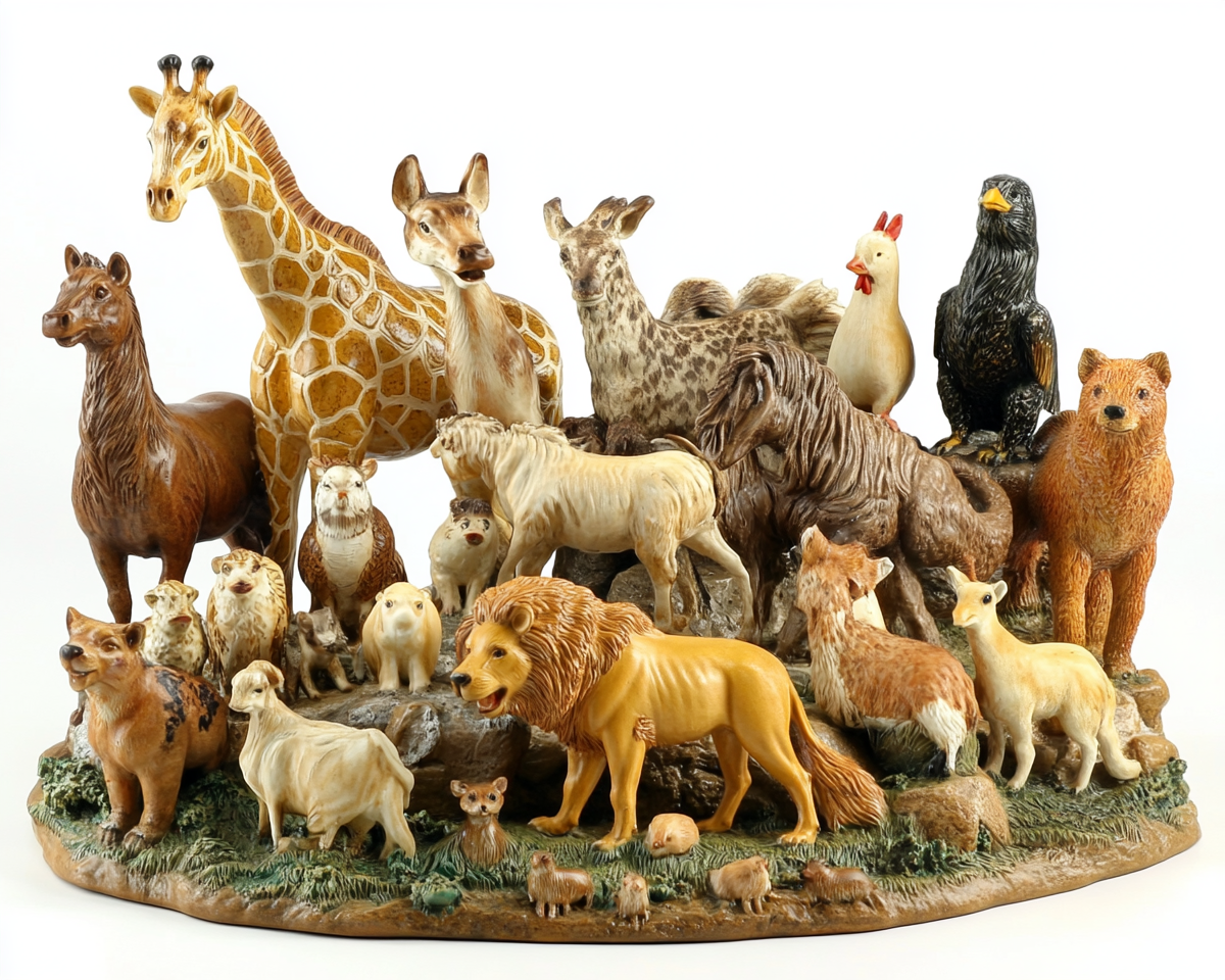 "a puzzle zith 24 animals Lion Elephant Giraffe Zebra Bear Fox Wolf Hare Squirrel Owl Eagle Deer – Turtle Mouse – Cow – horse – Chicken – Pig – Sheep – Donkey – Tiger – Cat – Dog (of the farm) – Duck "