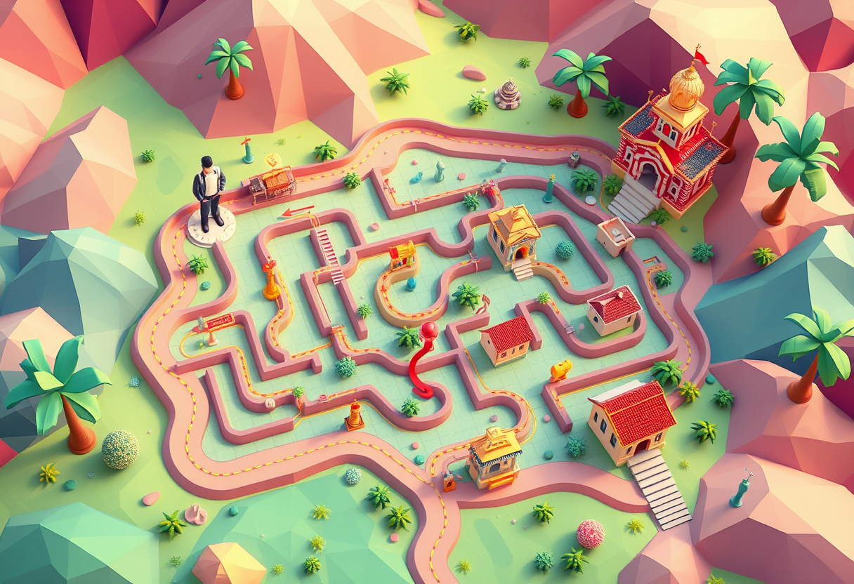 6. Keep only one correct path to the destonation angamaly railway station., low poly 3D render, geometric art, faceted design, colorful polygons, modern 3D illustration, highly detailed, rich textures, intricate details, watercolor painting style, soft flowing colors, delicate brushstrokes, artistic watercolor technique, highly detailed, rich textures, intricate details"