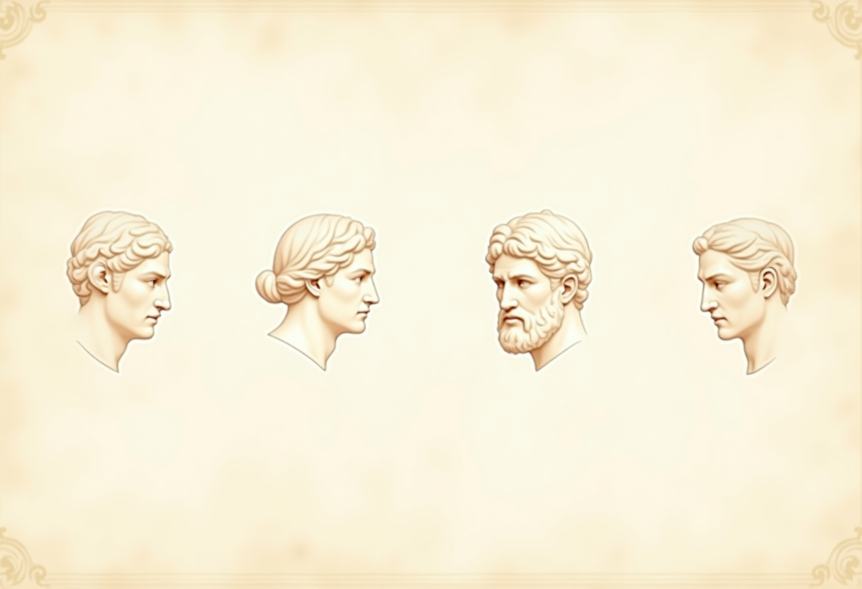 "A clean, minimalist background for a crossword puzzle about the four temperaments. Soft parchment texture with faint, barely visible sketches of four ancient Greek faces representing different personality types: one cheerful and lively, one calm and steady, one passionate and intense, one pensive and melancholic. Pale beige and light cream colors. Very subtle, low contrast, plenty of white space for text readability. Educational, vintage scientific illustration style., watercolor painting style, soft flowing colors, delicate brushstrokes, artistic watercolor technique, natural daylight, clear and balanced lighting, monochromatic color scheme, elegant single-hue palette, highly detailed, rich textures, intricate details"