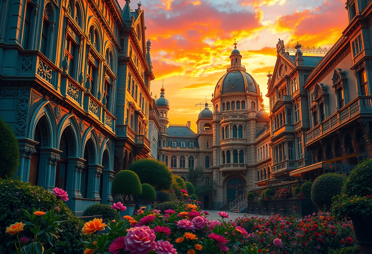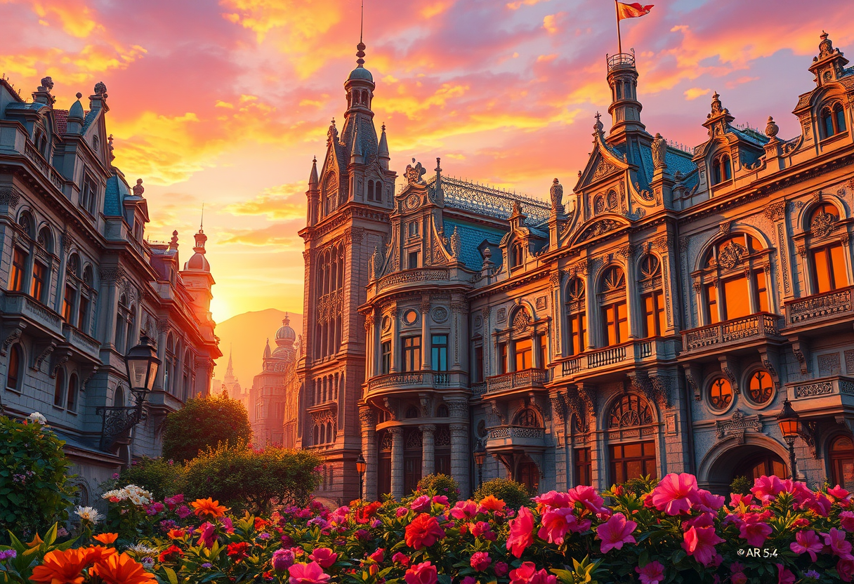 "stunning architectural scene, golden hour photography, warm sunset light, soft golden glow, magic hour, beautiful natural lighting, highly detailed, rich textures, intricate details"