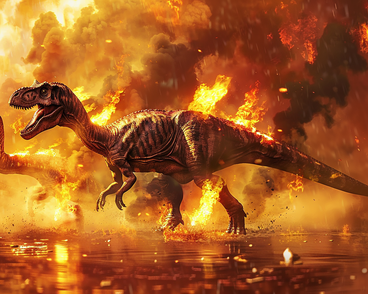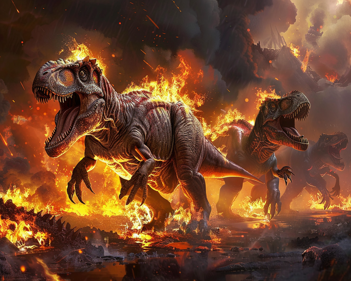 "Dinosaurs on fire"