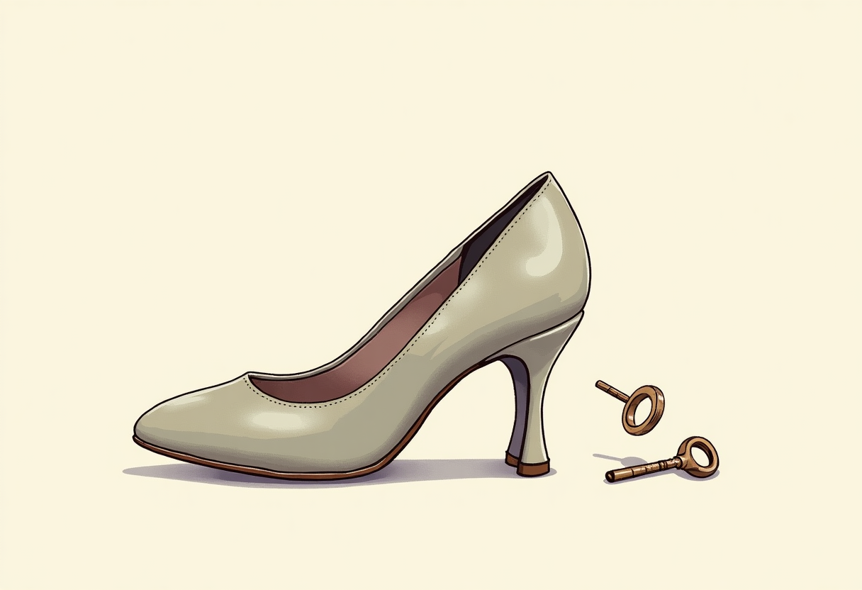 "please generate a puzzle of 6 pieces that illustrates a key coming out of a shoe"