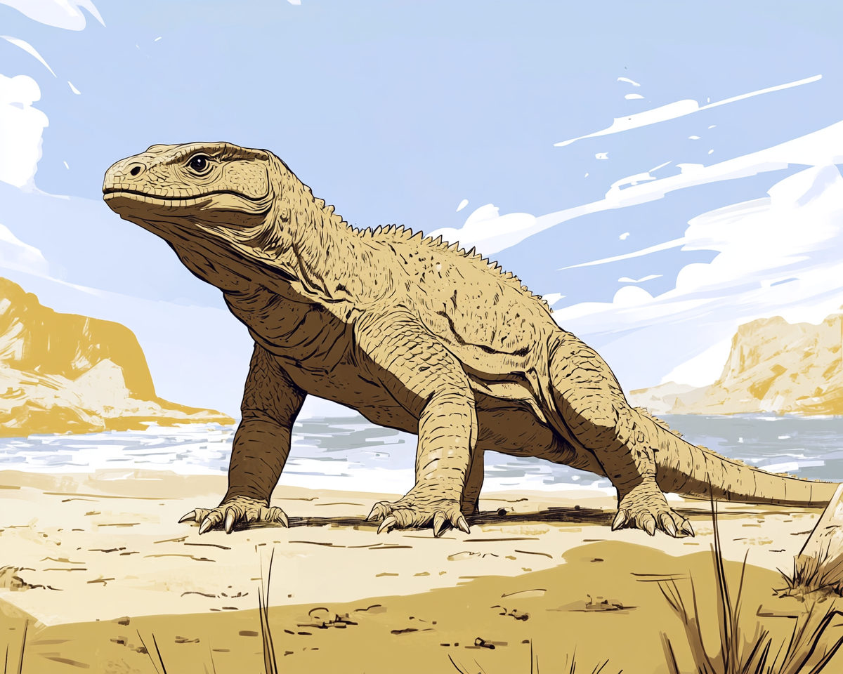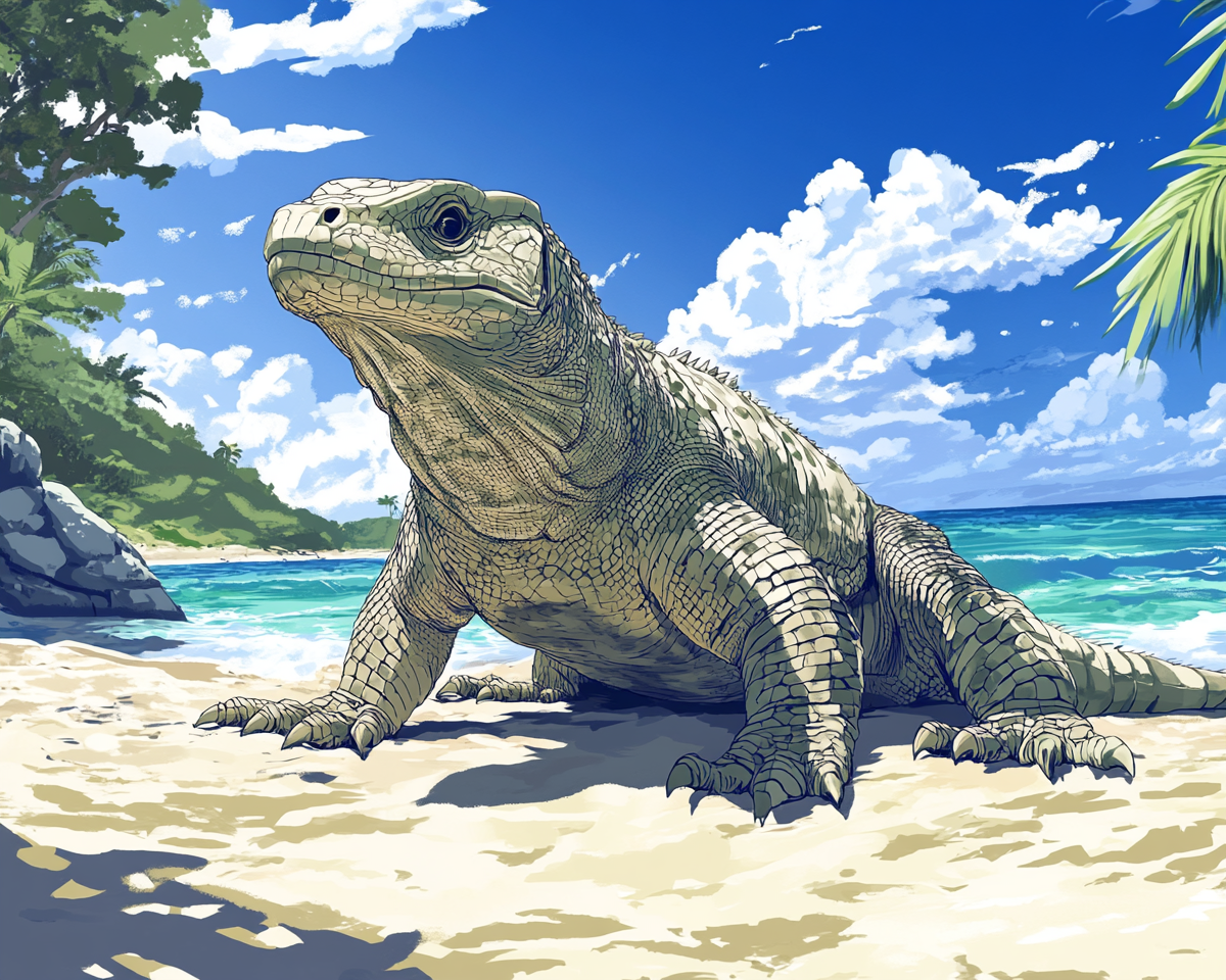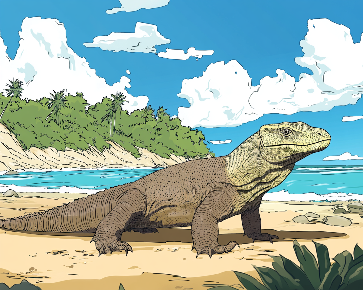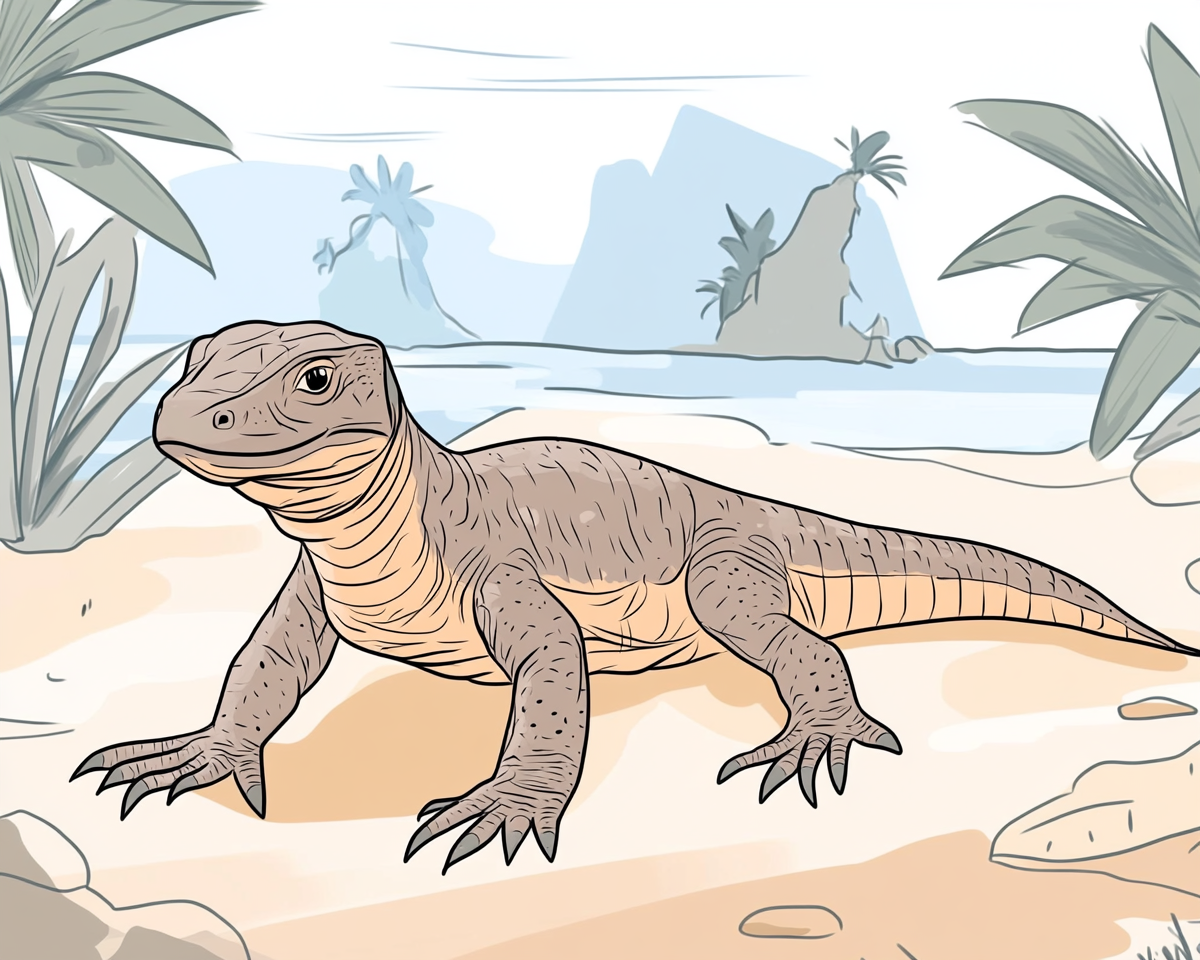 "A comodo dragon in a beachy area. Simple picture but detailed. Nicely coloured and clear outlines. "